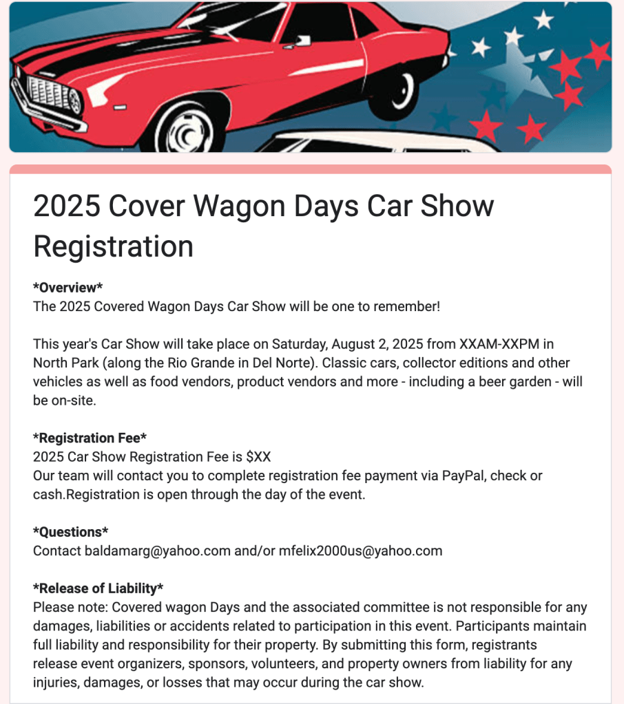 This year’s Car Show is scheduled for 9AM-3PM on Saturday, August 2, 2025 in North Park along the Rio Grande in Del Norte.